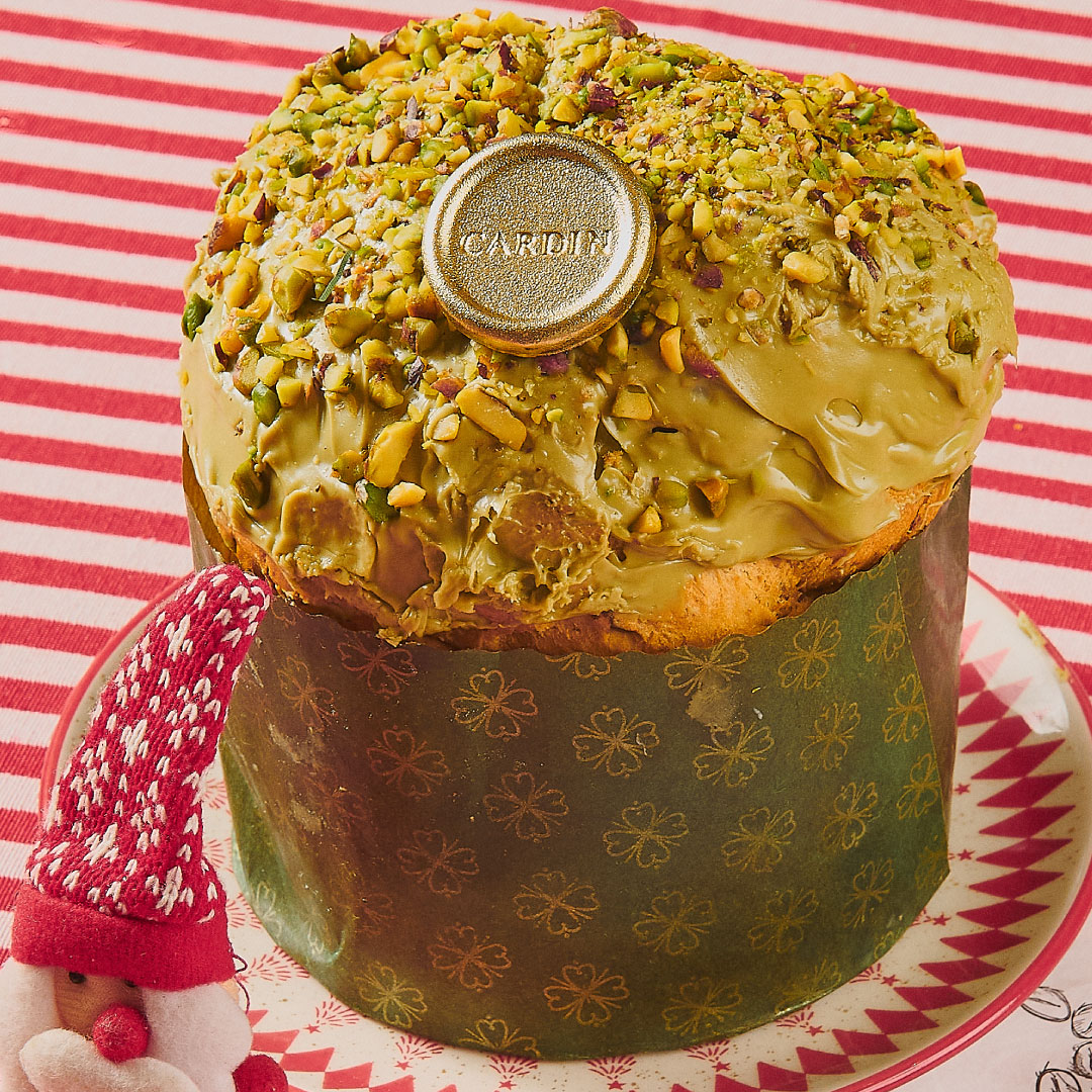 O Natal ganha sabor e brilho com o nosso Panetone de Pistache: o clássico que ganhou uma versão deliciosas no Cardin com delicoso creme de pistache e coberto com delicadamente com o mesmo creme é finalizado com pedacinhos de pistache e ainda acompanha uma charmosa medalha dourada de chocolate ao leite, um detalhe doce que torna o presente ainda mais especial. Aproveite a nossa entrega expressa para as regiões da Barra da Tijuca, Zona Sul, Centro e Tijuca e garanta que ele chegue fresquinho para você ou para quem você deseja presentear.